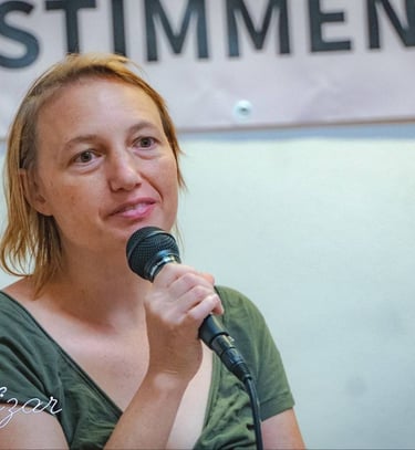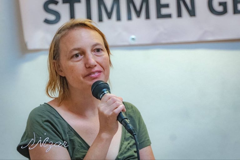 Franziska Markus, Enkelin eines Holocaustüberlebenden und Nachfahrin von im KZ Auschwitz ermordeten Familienmitgliedern, Mitglied bei Austrian Jews for Decolonial Anti-Zionism (OJDA) und Peace Movement Westaustria