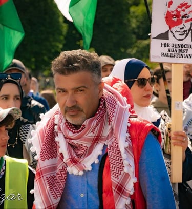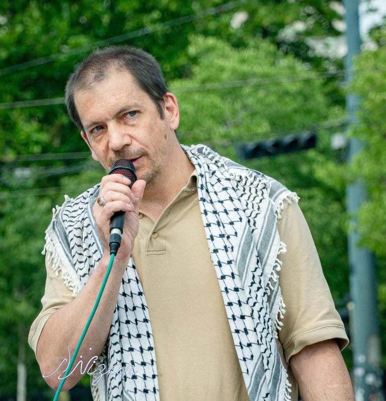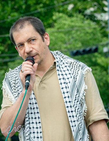 Topoké Panafrikanist und Kandidat der Liste GAZA, ist Künstler und Lehrer mit Wurzeln im Kongo. Er engagiert sich gegen Rassismus, Chauvinismus und Unterdrückung. "Jede und Jeder kann Missstände aufzeigen und gegen Ausgrenzung auftreten." Die Solidarität des globalen Südens, besonders aus Afrika, zeigt die Stärke des Widerstands gegen Völkermord und Apartheid.