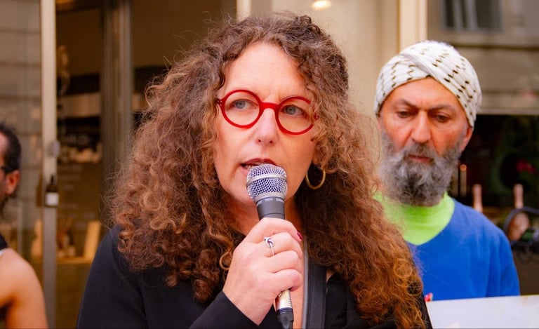 Ellen Lewis, ehemalige Lehrerin an der International School, progressive Aktivistin, Mitbegründerin der Initiative "Not In Our Name" Vienna