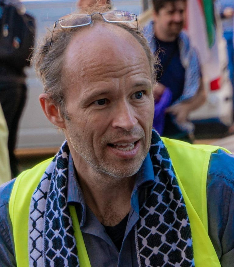 Ronnie Barkan ist ein israelischer Dissident, Mitbegründer von Boycott from Within, Mitglied von Anarchists Against the Wall und Palestine Action. Am Nakba-Tag 2022 nahm er an einer direkten Aktion gegen den britischen Hauptsitz des israelischen Unternehmens Elbit Systems teil. Elbit ist Israels führender Waffenhersteller und hat derzeit Stiefel vor Ort in Gaza, die dabei helfen, den Völkermord auszuführen. Kürzlich wurde Barkan von der deutschen Geheimpolizei nach seiner Münchner Rede auf dem Professor-Huber-Platz schikaniert, in der er das Erbe der Weißen Rose, die sich dem Nationalsozialismus entgegenstellte, mit direkten Aktionen gegen den Zionismus verband.